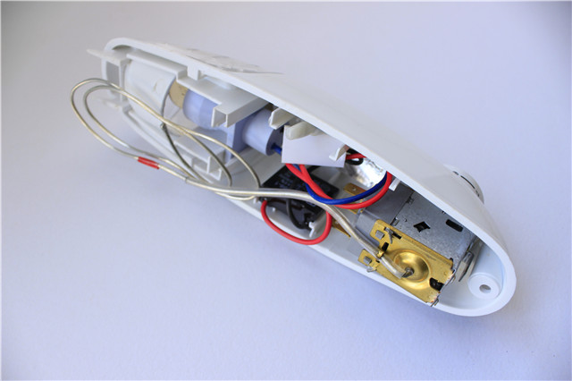 将压力式温控器、塑料底盒、旋钮及LED灯板装配成套,构成温控总成件。